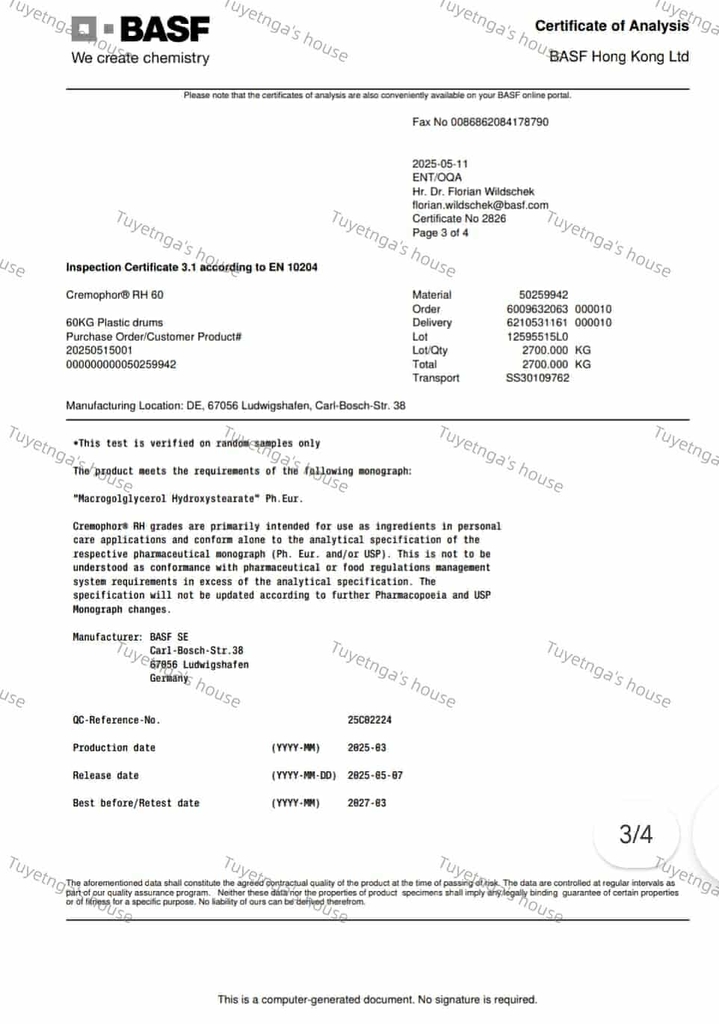 Tên hóa học: Dầu thầu dầu hydro hóa PEG-60