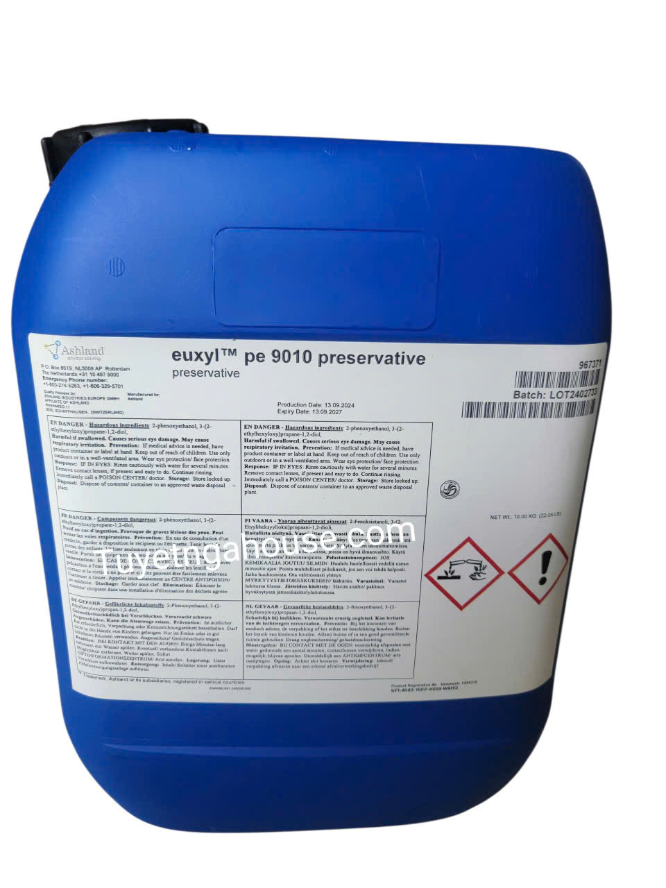 Euxyl PE 9010 là chất bảo quản mỹ phẩm ở dạng lỏng, có thành phần chính gồm phenoxyethanol (90%) và ethylhexylglycerin(10%). Việc bổ sung thêm ethylhexylglycerin ảnh hưởng đến sức căng ở các tế bào màng của sinh vật, cải thiện chất bảo quản.