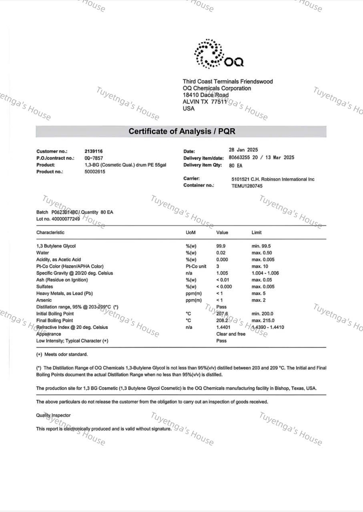 Tên sản phẩm: 1.3-dihydroxybutane, (±)-1.3-butylene glycol, m-butylene glycol