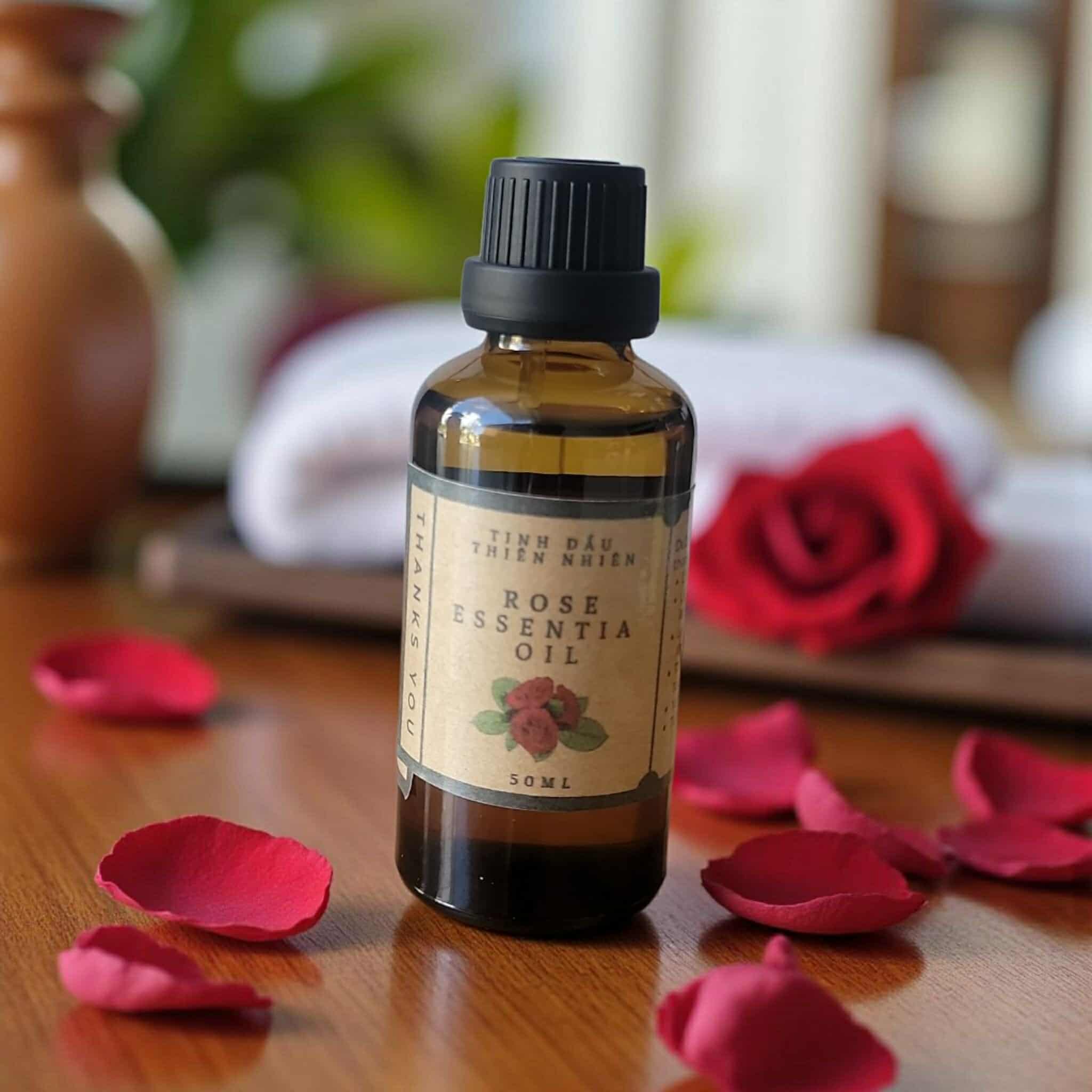 Tinh dầu hoa hồng được trích ly 100% từ hoa hồng nguyên chất chứa nhiều axit béo hữu cơ, chất chống oxy hóa làm giảm nếp nhăn, giảm sự lão hóa ở da giúp da sáng đẹp tự nhiên. Bên cạnh đó tinh dầu hoa hồng còn có tác dụng cân bằng độ ẩm hiệu quả cho da, ngăn chặn viêm lỗ chân lông, làm giảm vết thâm, giảm mụn và các vết sưng đỏ do mụn, mang đến làn da mềm mại, mịn màng hơn.